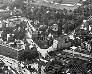 Dieses Luftbild der Chemnitzer Innenstadt vermittelt uns eine seltene Perspektive auf das alte Stadtbild.