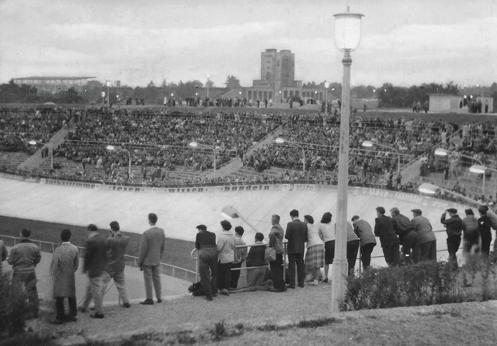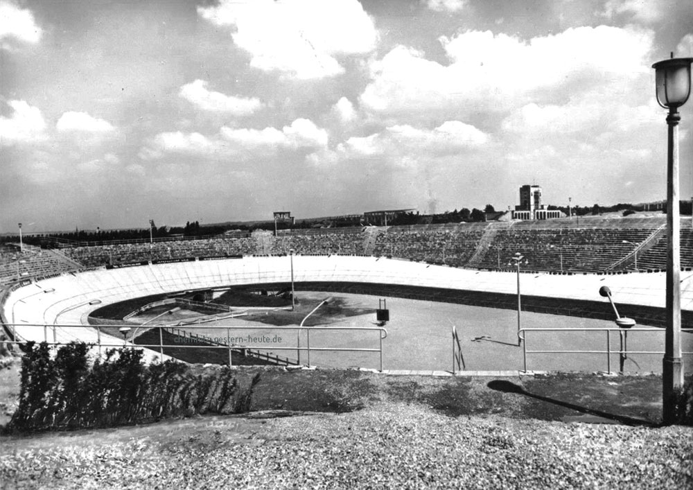 Vor 12.000 Zuschauern weihte der Chemnitzer Oberbürgermeister Müller am 22. Oktober 1950 die neue Zementbahn der sächsischen Industriestadt ein. Mit großer Anteilnahme verfolgten die Radsportbegeisterten die Leistungen der Spitzenfahrer der demokratischen Sportbewegung und den ersten Start der Berufsfahrer hinter Motorschrittmachern. Die Rennen gipfelten in der fünften und letzten Prüfung der DS-Spitzenmannschaft im Bahnfahren. Ergebnisse bei den Junioren: 1. Wagner (BSG Plania-Siemens Berlin), 2. Neye (Potsdam), 3. Uischner (Riesa); im Verfolgungsrennen: 1. Stammer (Ost Leipzig), 2. Schubert (Zwickau) Die Spitzenmannschaft der Jugend im Bahnfahren bilden: 1. Hans Stoltze (KWU Erfurt), 2. Paulus (Magdeburg), 3. Adamek (Leipzig), 4. Lutz (Dresden). Verfolgungsrennen: 1. Reichmann (Astra Chemnitz). 2. Holstein (Diamant Chemnitz). Das 40-km-Mannschaftsfahren der Junioren holten sich die Berliner Wagner-H. Weinert mit 26 Punkten in 54:05. Das 100-km-Steherrennon der Berufsfahrer gewann Erich Metze (Dortmund) in 1:25:56 vor Umbenhauer (Nürnberg), Richter (Chemnitz) und Gerber (Chemnitz). (Berliner Zeitung 25.10.1950)