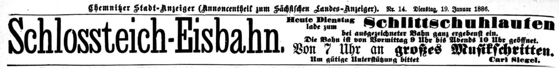Die Tagespresse meldet dazu: „Gestern Nachmittag 3 Uhr sind auf dem, zur Gemeinde Schloßchemnitz gehörigen, Schloßteiche, auf dem sich, trotz des Verbotes seitens des königlichen Gerichtsamtes, viele Kinder und eine Anzahl Erwachsene zum Schlittschuhlaufen eingefunden hatten, 32 Personen eingebrochen. 19 von denselben wurden gerettet, 11 sind ertrunken und 2 werden noch vermißt.“