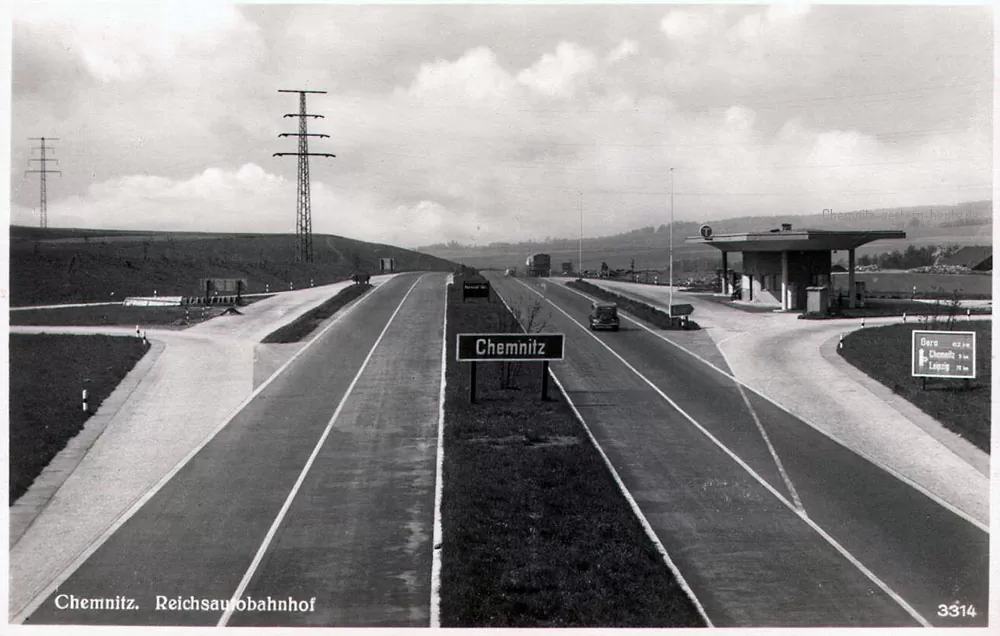 Im Beitrag „Die Autobahn um Chemnitz“ habe ich den ersten Abschnitt des Reichsautobahnbaus von Dresden kommend beschrieben. Weitere Impressionen dieses Abschnittes zum Ende der 30er Jahre sollen hier die fortführenden Baumaßnahmen einleiten.