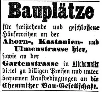 Der Rest zwischen der Zwickauer Straße, Altendorf und der Leipziger Straße zeigte sich noch gänzlich unbebaut. Noch gab es in Chemnitz keinen Wohnungsnotstand, doch auf Grund der Bevölkerungsentwicklung waren die Mietpreise in Chemnitz Anfang der 1870er Jahre bereits um ca. 15 – 20% gestiegen. Um den Bau geeigneter Wohnungen voranzutreiben, bemühten sich neben vielen Privateigentümern, Vereinen auch neu gegründete Gesellschaften, die bezahlbaren gesunden Wohnraum für einkommensschwache Mieter schaffen wollten.