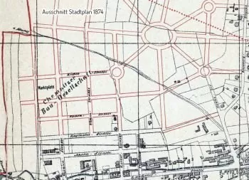 Mit Beginn der zunehmenden Industrialisierung Mitte des 19. Jahrhunderts breitete sich die Stadt Chemnitz immer mehr aus. In westlicher und nordwestlicher Richtung entstanden zuerst Fabriken. die die Zuwanderung ins Stadtgebiet förderten. Auf dem vorderen Kaßberg waren die ersten Straßen abgesteckt, wie der Stadtplanausschnitt von 1874 zeigt.