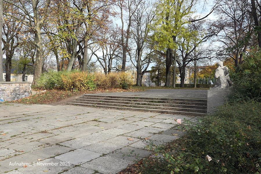 Aufgestellt wurde es 1939 im Zuge der 1937 begonnenen Umgestaltung das damaligen Schlageterplatzes (Alter Johannisfriedhof, Karl-Marx-Platz, heute Park der OdF) an der Freitreppe, die von der Zschopauer Straße hinauf zur Platzanlage führt. Fast unversehrt erlebte der Eselreiter den Wandel seiner Umgebung.