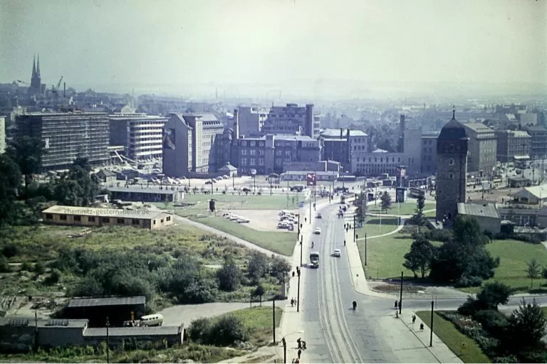 In den Jahren nach dem Ende des Zweiten Weltkrieges hatten viele freiwillige, aber auch zwangsverpflichtete Helfer dazu beigetragen, die Trümmer zu beseitigen und Platz für das neue Karl-Marx-Stadt zu schaffen. Durch diese radikale Beseitigung entstanden neue Baufluchten und Baulinien, ein von Freiflächen geprägtes Gebiet, das jahrelang zum Streitobjekt der Stadtplaner wurde. Die Pläne für die Neugestaltung waren vielfältig, das künftige Stadtzentrum sollte nicht wie früher durch eine Vielzahl von Schornsteinen geprägt sein. Noch 1956 gab es Pläne zum Ausbau des alten Wallringes zur Ring-Allee, die Restaurierung einer City im Innern des Ringes und eine Erweiterung eines Ensembles am „Zentralen Platz“. Im Jahre 1959 wurde auf der Grundlage eines sozialistischen Städtebaukonzepts, das von einem Kollektiv junger Architekten ausgearbeitet worden war, eine neue Grundlage für den Wiederaufbau des Stadtzentrums geschaffen.