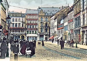 Handwerker und Geschäfte prägten den Holzmarkt im alten Chemnitz. 1945 zerstört, wurde er 1965 nach der Umgestaltung zum Rosenhof umbenannt.